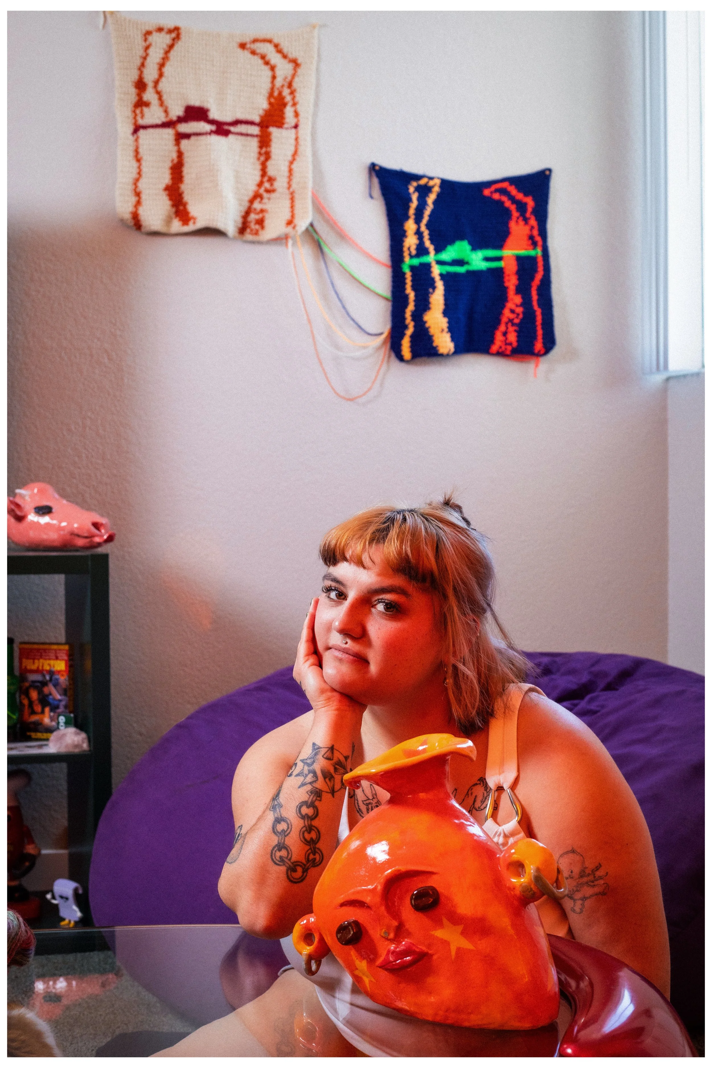 Leilu Reed (they/he) is a fiber artist and historian whose work engages crochet as a site of research, community, and resistance. They will be receiving their bachelor’s degree in History, and their practice is informed by the study of women’s labor, craft traditions, and the social histories embedded in fiber work. Learning techniques through digital platforms and shared knowledge, Reed bridges historical research with contemporary making. Alongside their studio practice, they lead community workshops that emphasize accessibility, collective learning, and the continuation of fiber traditions through conversation and shared labor.